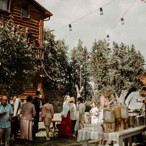 В Загородном доме «Вераги» можно организовать свадебное торжество. Имеются беседки на выбор: круглая с очагом вмещает до 60 гостей и большая белая — до 90 человек. Уютная атмосфера на краю соснового леса, полная аренда территории, большой дом, зелёная зона — все, что нужно для идеальной свадьбы!